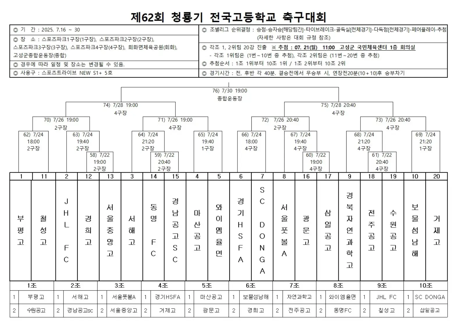 | 2025 추계 전국 고등 축구대회 예선 경기 결과, 조별 최종 순위, 본선 대진표 (2) | 2025.07.26 |